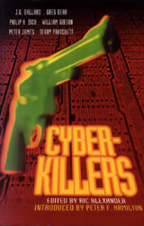 Cyber-Killersedited by RIC ALEXANDER Cyber-Killers is a somewhat different cyberpunk anthology. It's divided into three sections: Network Terrorists, Robot Crime and Virtual Murderer. Nothing is really new in an anthology as this, several authors is familiar for the cyberpunk reader, as William Gibson, Pat Cadigan and John Shirley. And the stories are naturally those published elsewhere before. The magic of an anthology is the taste with which the editor manages to put together a selection of stories. And it's an tempting selection in Cyber-Killers. In the preface Peter F. Hamilton writes that the product has become its own label. He's aiming at the word cyber in the modern culture. I'm not sure if it's a product, or a label, but perhaps it is. I only read and see it in books and films. And that thing Hamilton describes as cyber really makes me long a little. If you like SF and the product/label cyber, this is a book for you.
